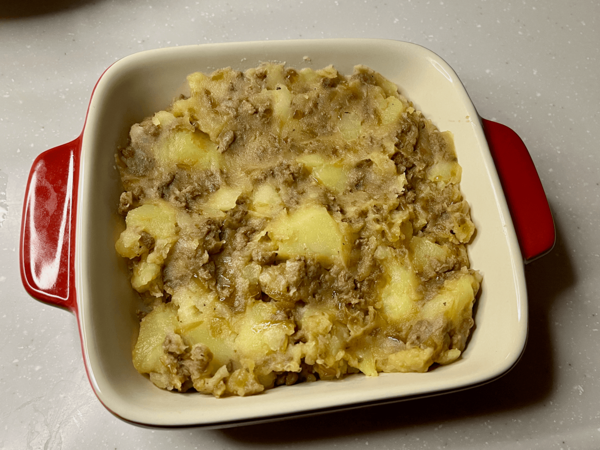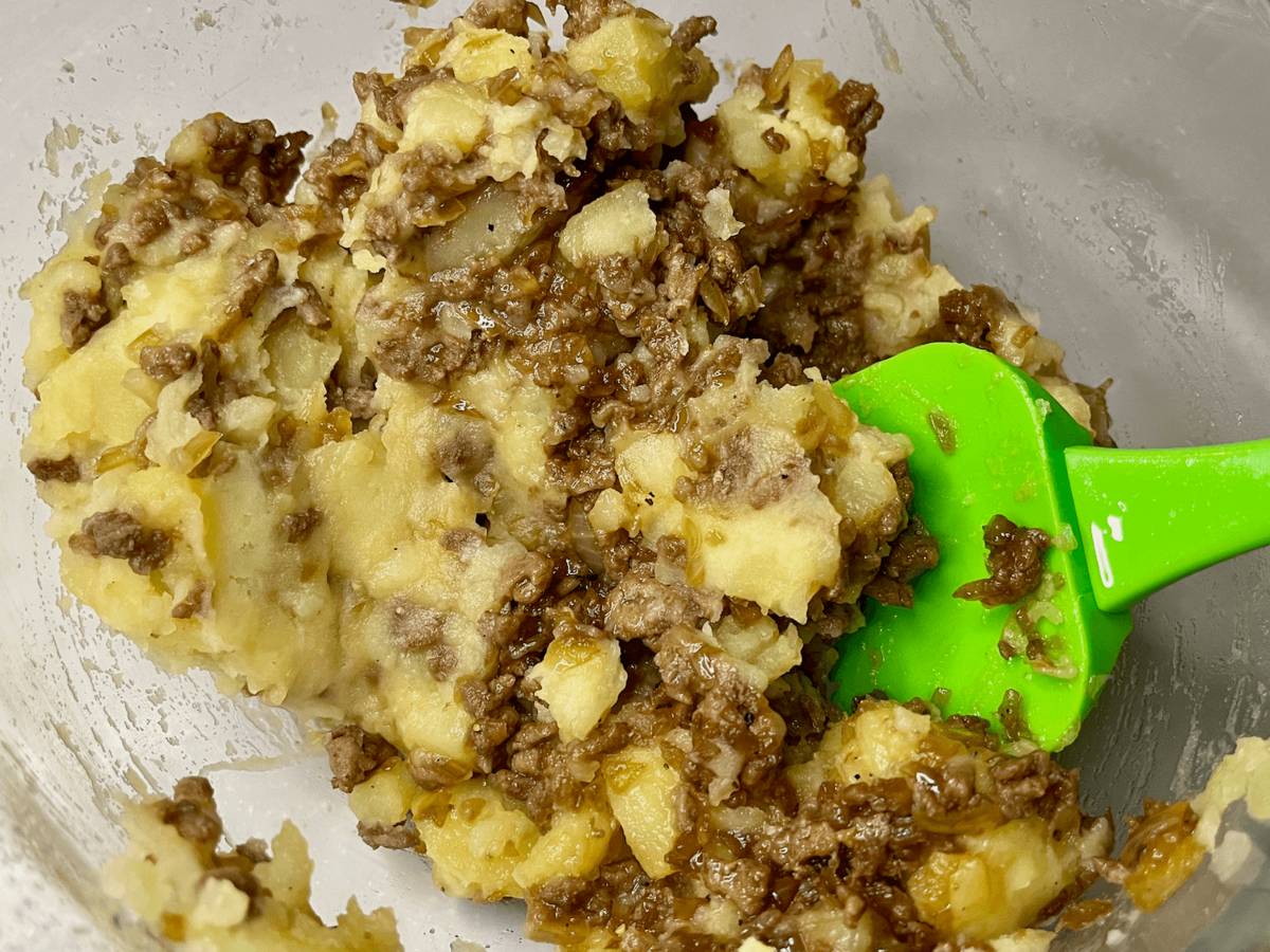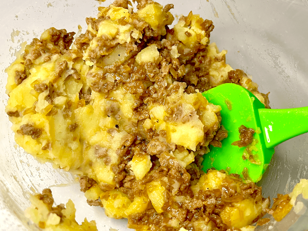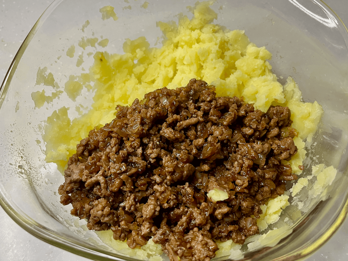 作り方⑤じゃがいもと合い挽き肉を合わせる