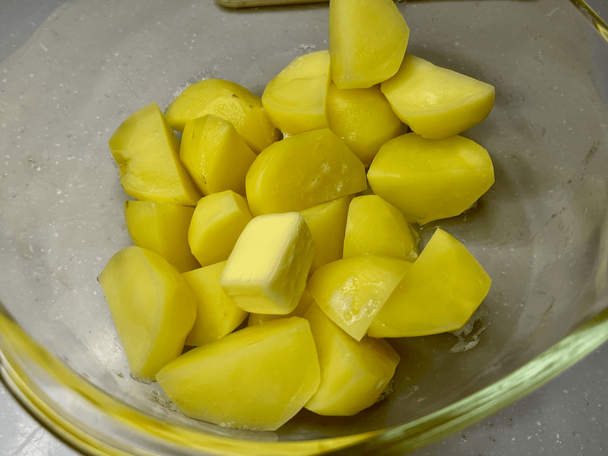 じゃがいもにバターを加え……