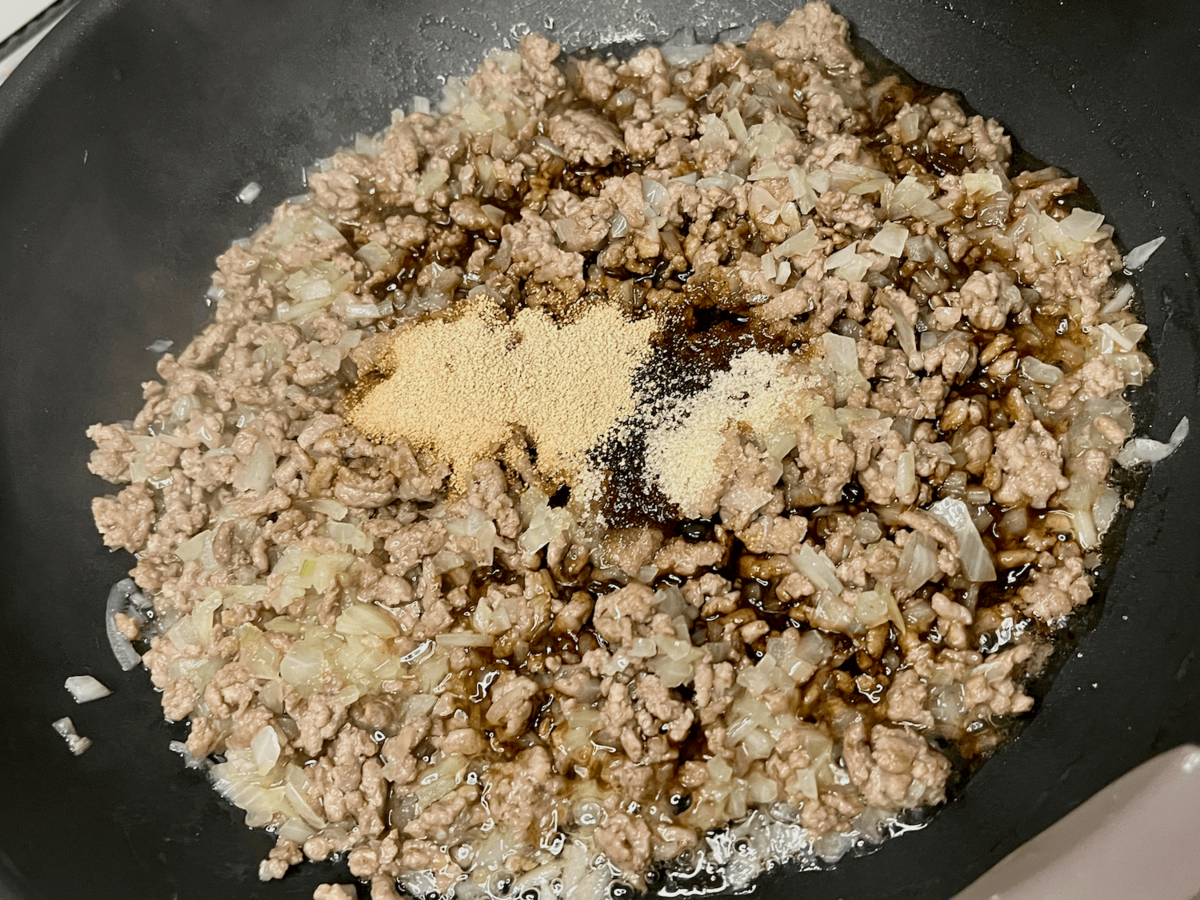 作り方④合い挽き肉を焼く