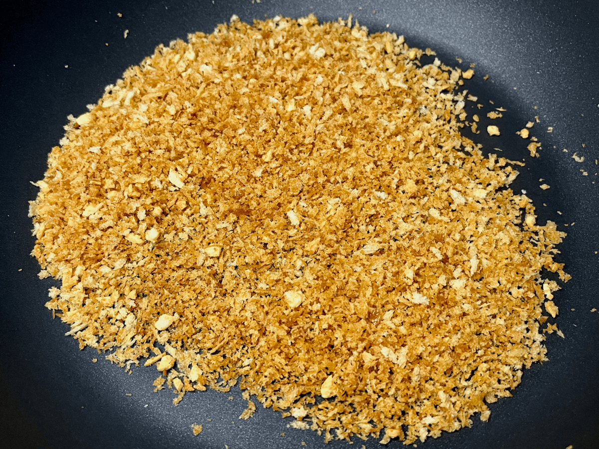 炒めたパン粉の順番で振りかけたら、準備完了。
