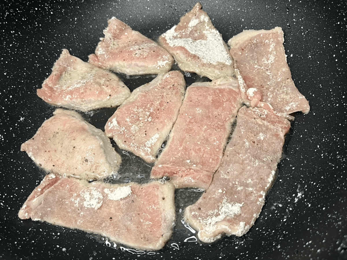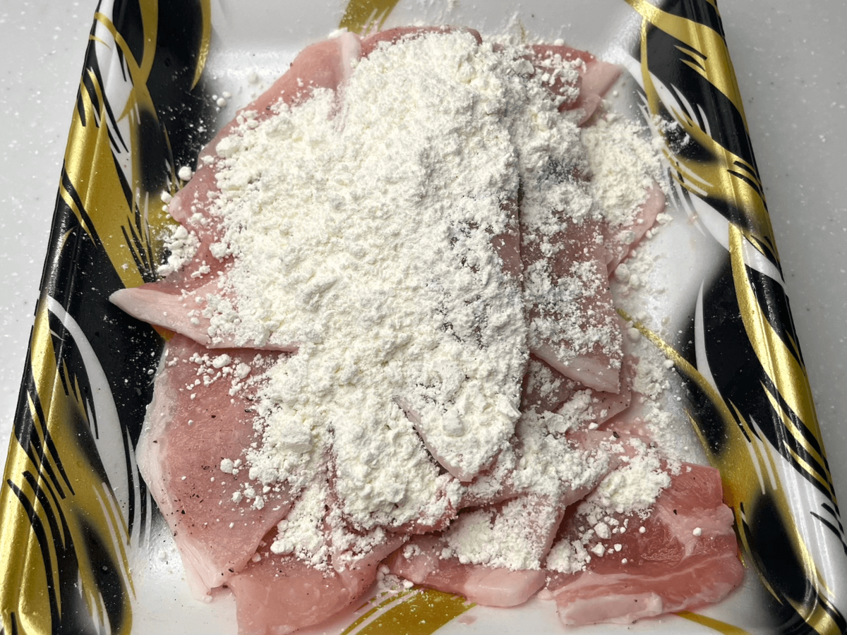 作り方②豚肉に塩こしょうと小麦粉をふる