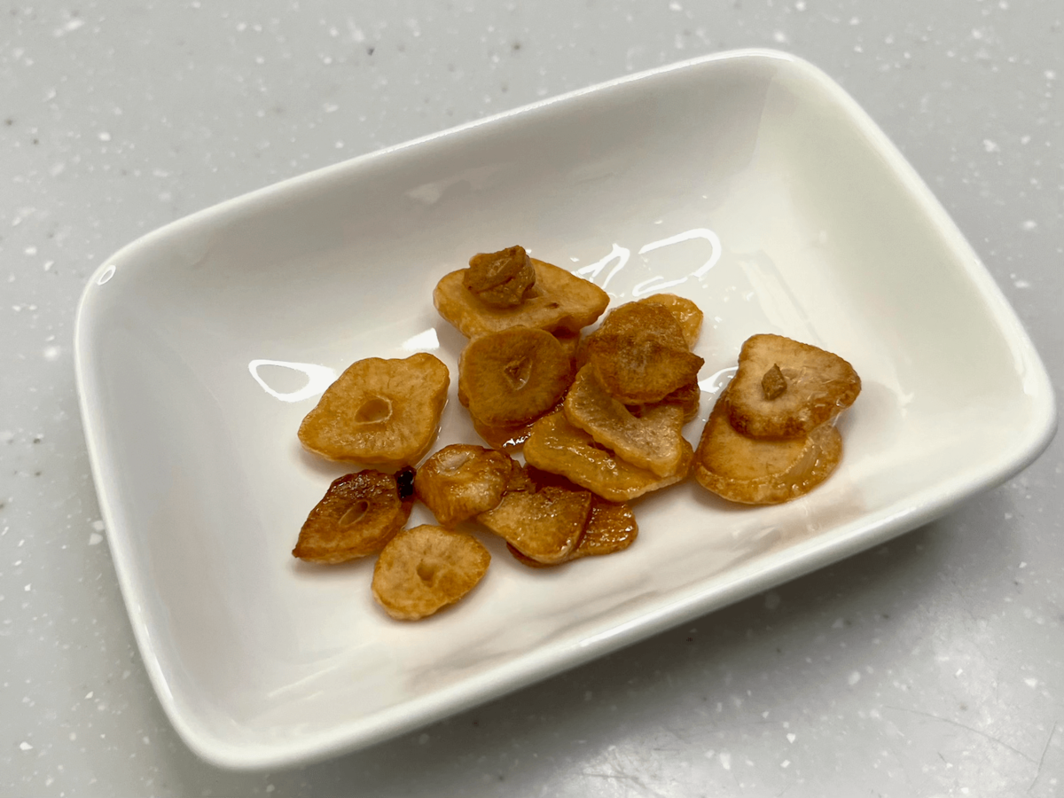 そこへ時々やってくる、香ばしいガーリックチップ。
