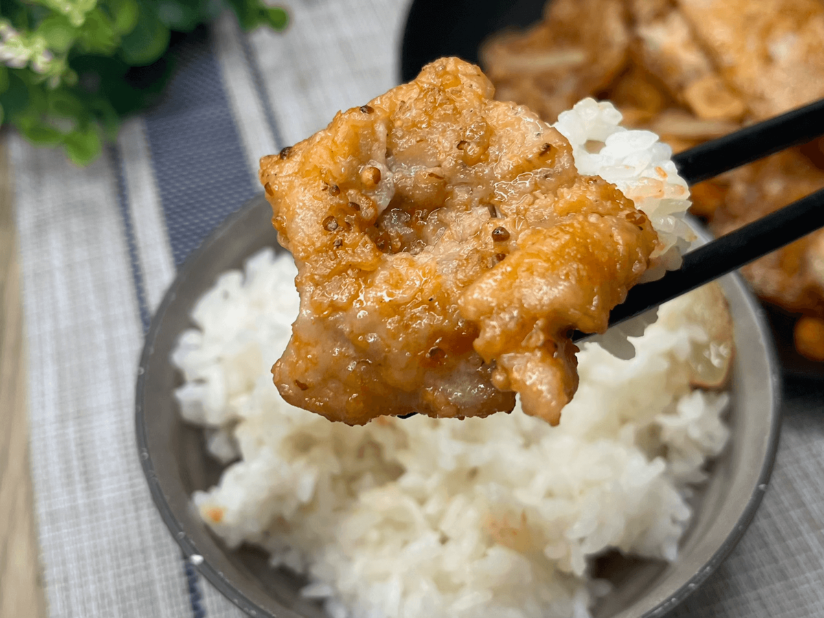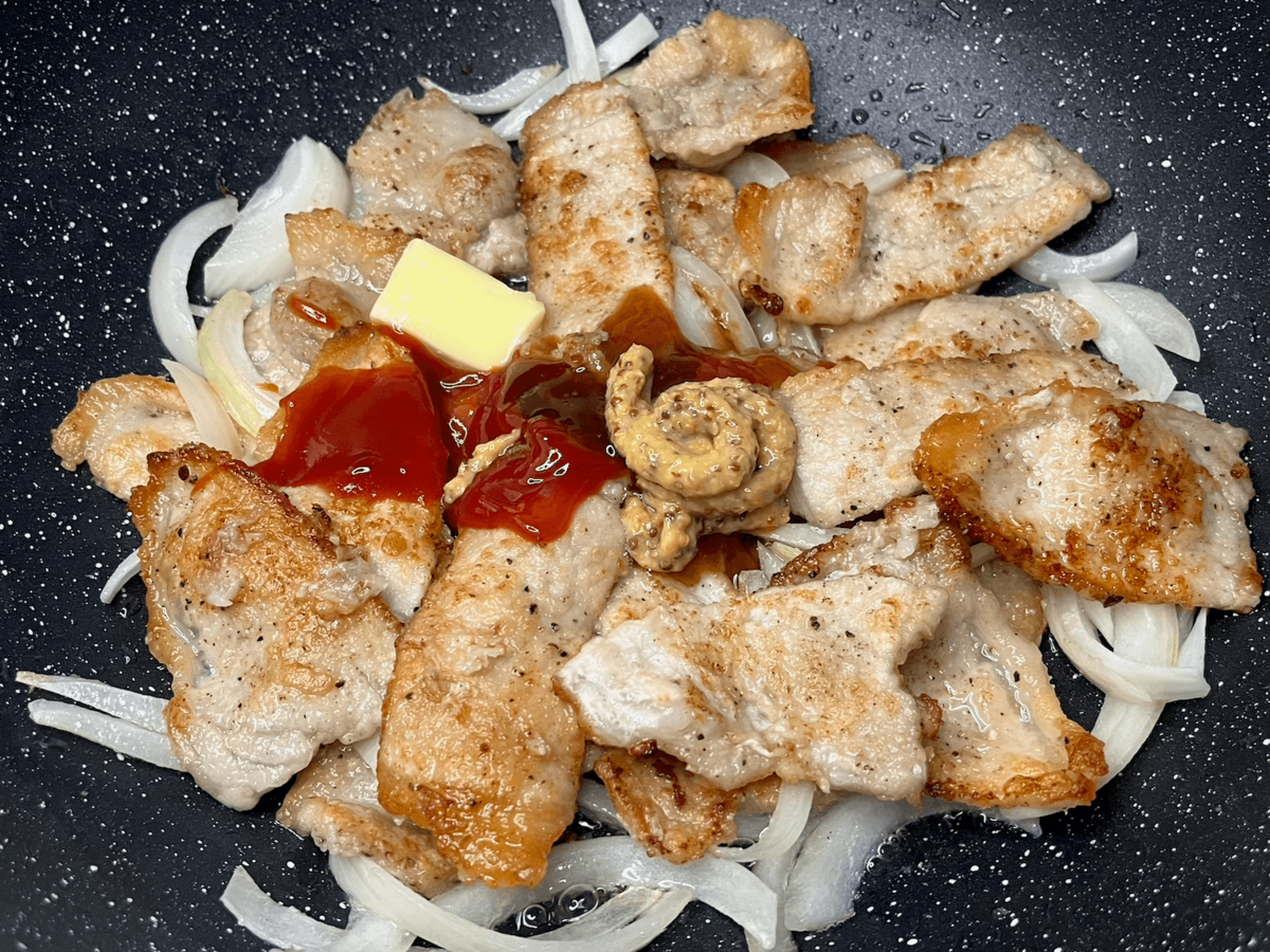 ソースを煮からめた後に火を止め、2分ほど置いてじっくり中心まで火を入れると、脂身も身もジューシーに仕上がります。