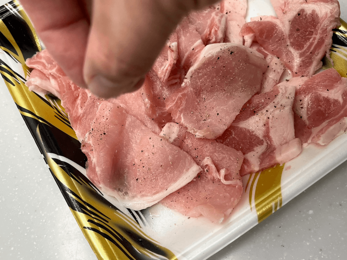 豚肉に満遍なく、塩こしょうをし、