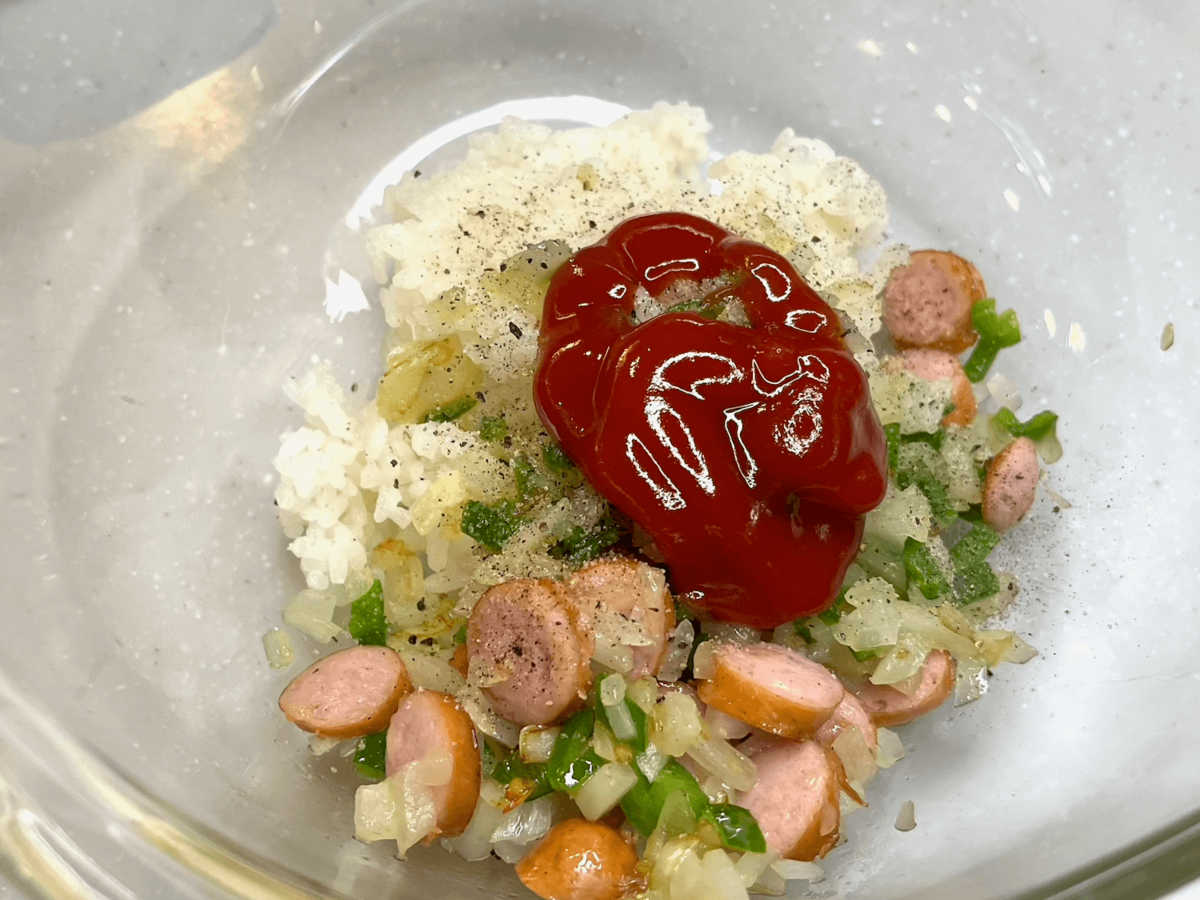 作り方③ケチャップライスを作る