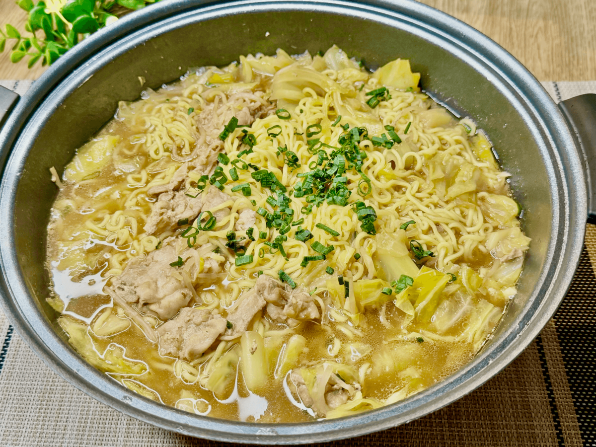 サッポロ一番の塩とんこつ味をベースに、背徳感が限界突破しているレシピ。