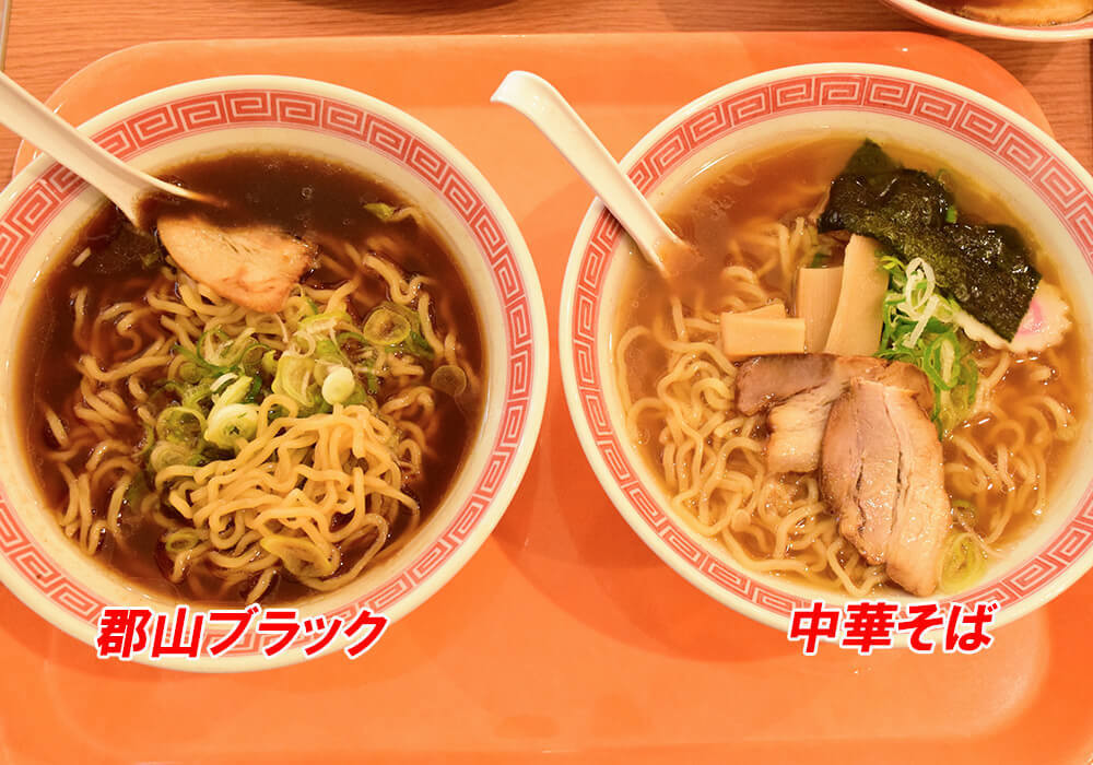 幸楽苑の「中華そば」と食べ比べた印象では「郡山ブラック」のほうが醤油のストレートなキレを感じます。一方、「中華そば」はだしの旨みがよく出ており、よりマイルドでバランスの取れた醤油ラーメンといった印象です。