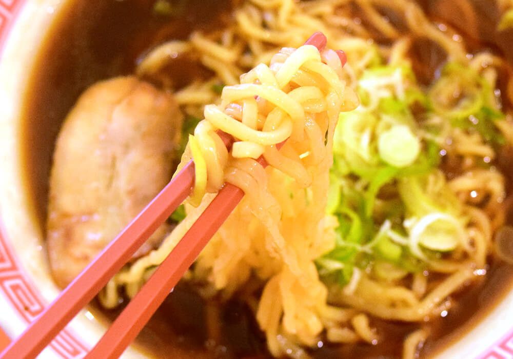「郡山ブラック」のスープは濃い色合いで、味も濃いだろう……と予想していましたが、キリっとした醤油の味わいではあるものの、くどさはありません。ストレートな醤油ラーメンを好む人におすすめです。