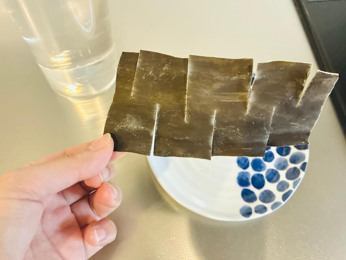 昆布はこのようにハサミで切っておくと、旨みを最大限に引き出すことができますよ。
