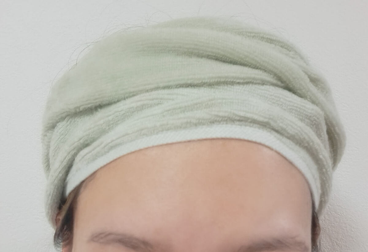 洗髪後にターバンタオルを被っておけば、スキンケアなどをしている間にも髪の水気がどんどん吸水されていきます。