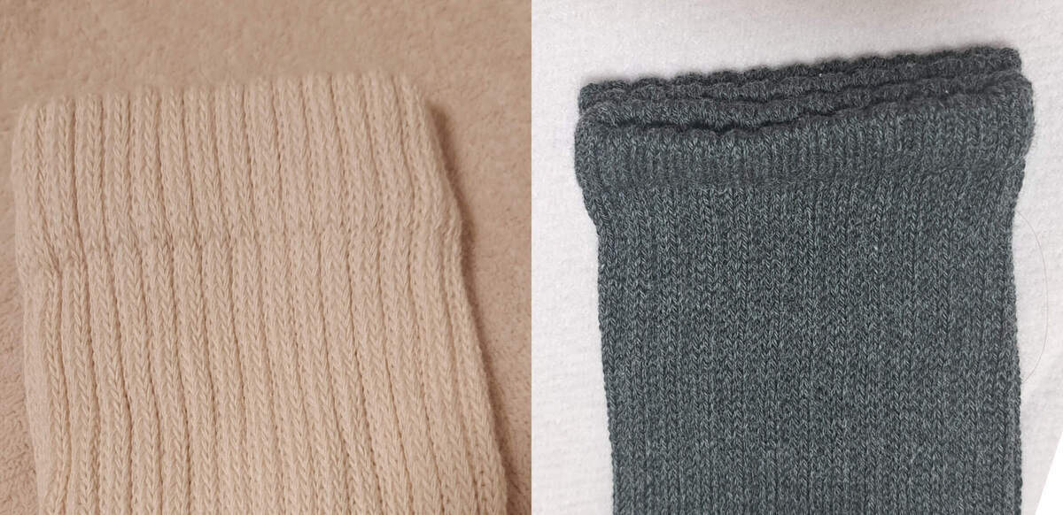 本当に若干ではありますが、リブの幅がユニクロの方が大きく、小さめなのが無印良品のものです。個人的にユニクロは足元に存在感を与え、無印は大人っぽい印象に仕上がると思います。