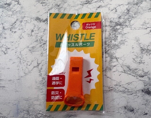 ホイッスルは救助時に居場所を教えるのに役立ちます。これは必ず防災ボトルに入れておきたいアイテムです。