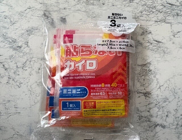 ミニミニホッカイロは全て入らないので、2個入れます。寒い中、少しでも暖がとれると心強いと思ったからです。