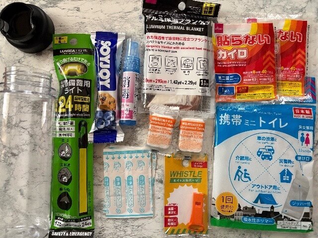 普段から身近に置いて、いざ地震が来たらサッと手に取ることができる「自分だけの防災ボトル」を準備することにしました。