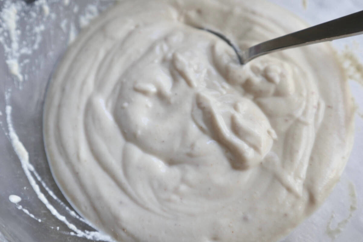 ミキサーやフードプロセッサーに豆腐と味噌、すりごまを入れて、滑らかになるまで撹拌します。