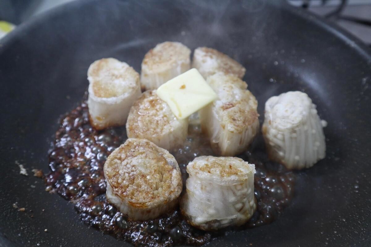 TikTokでバズっている、えのきがまるでホタテのバターソテーになるレシピをご紹介します。