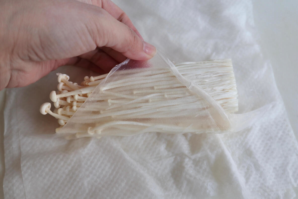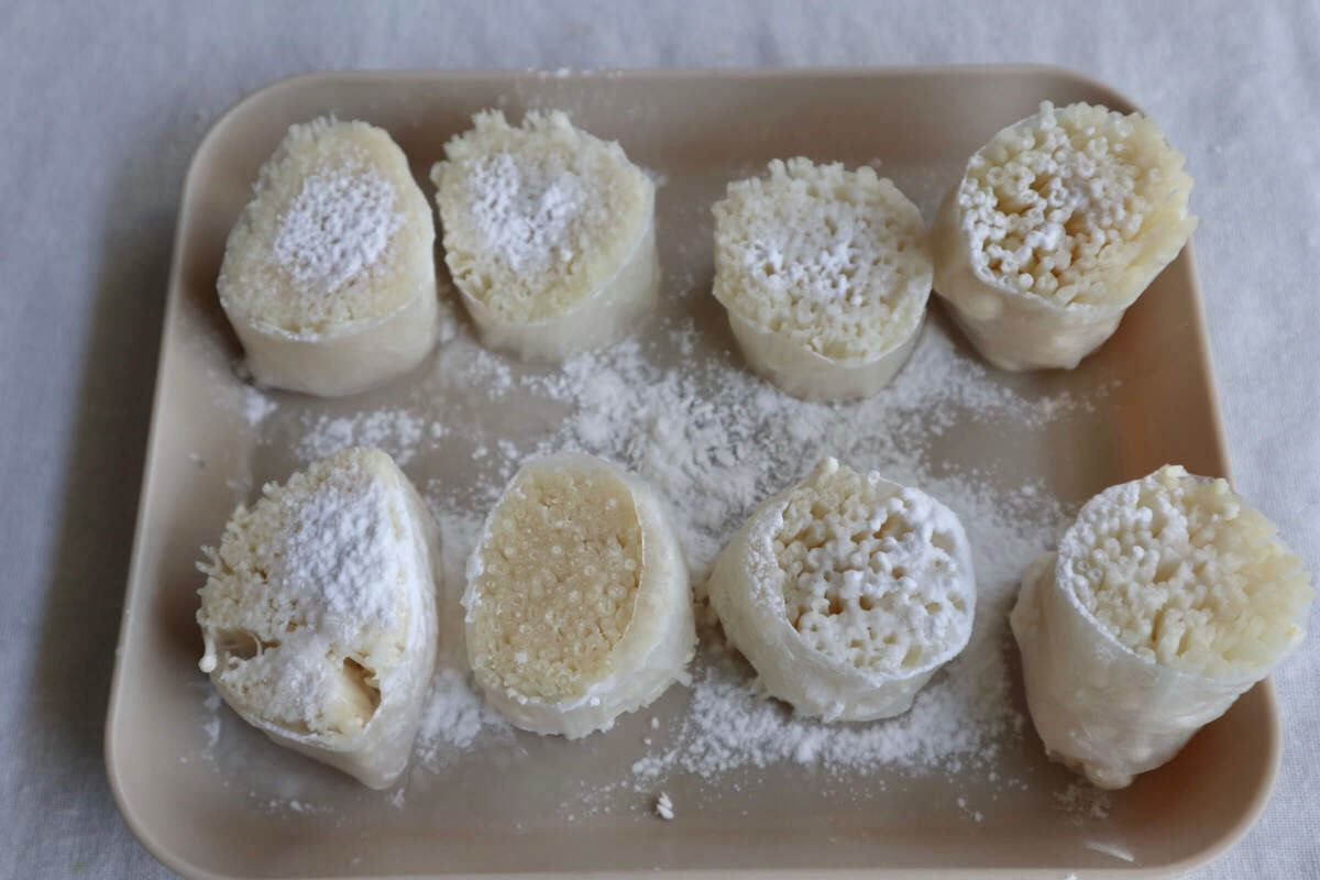 作り方①えのきをライスペーパーで巻く
