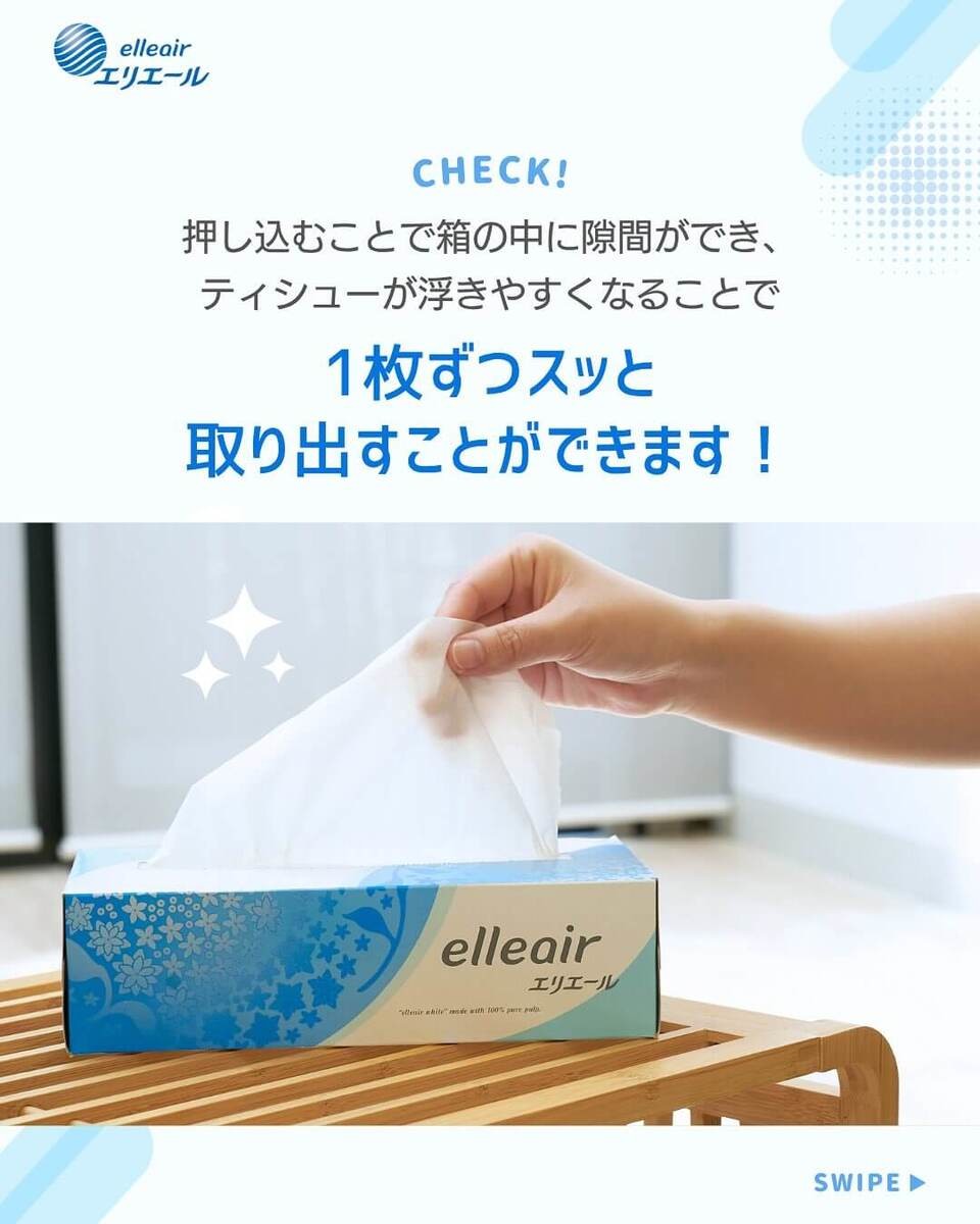 今回は、エリエール公式Instagram(@elleairofficial)で紹介された、ティシューを1枚ずつの裏ワザをご紹介します。