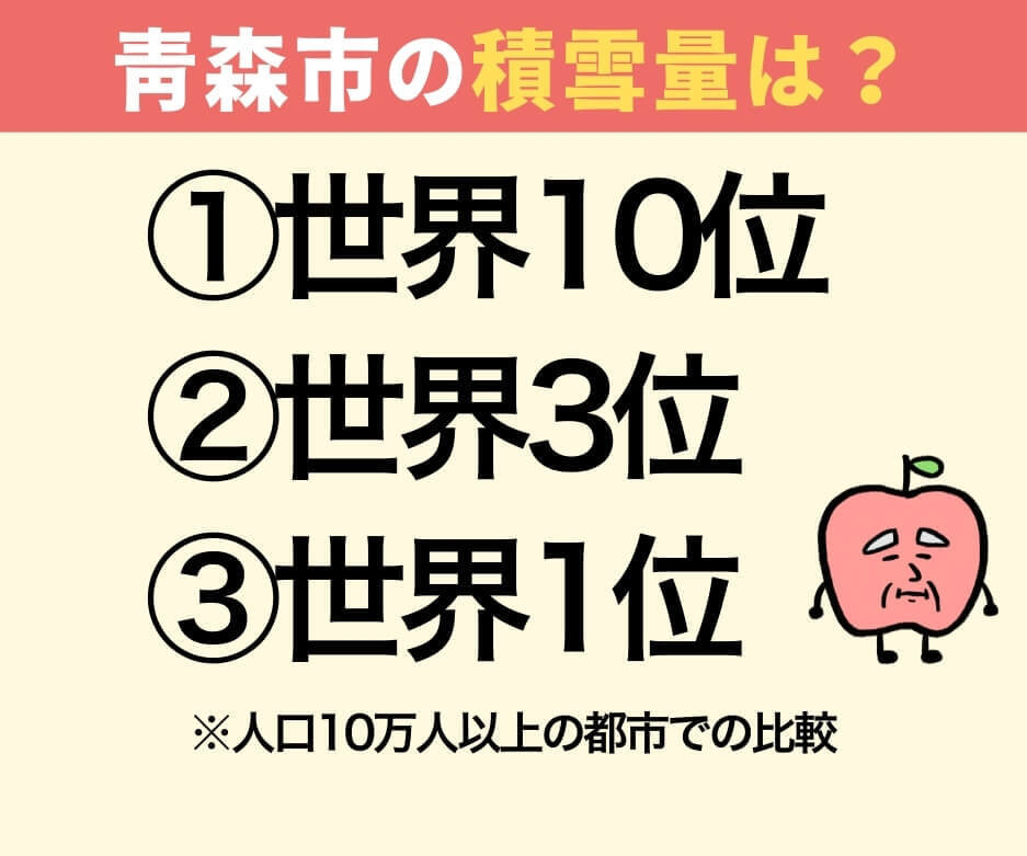 世界にはカナダやアメリカ、ロシアなど、いかにも雪が降りそうな国がたくさんありますよね。そんな強豪(?)を抑えて、青森市の順位とは……。