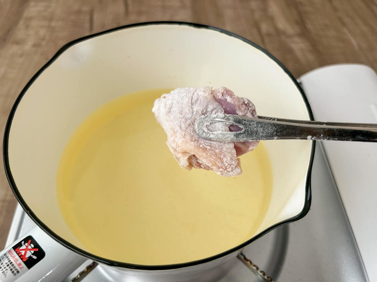 片栗粉に比べ、薄力粉は衣がしっとりと仕上がり、カリッと感は少なめです。