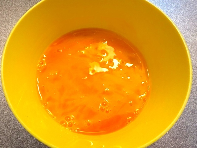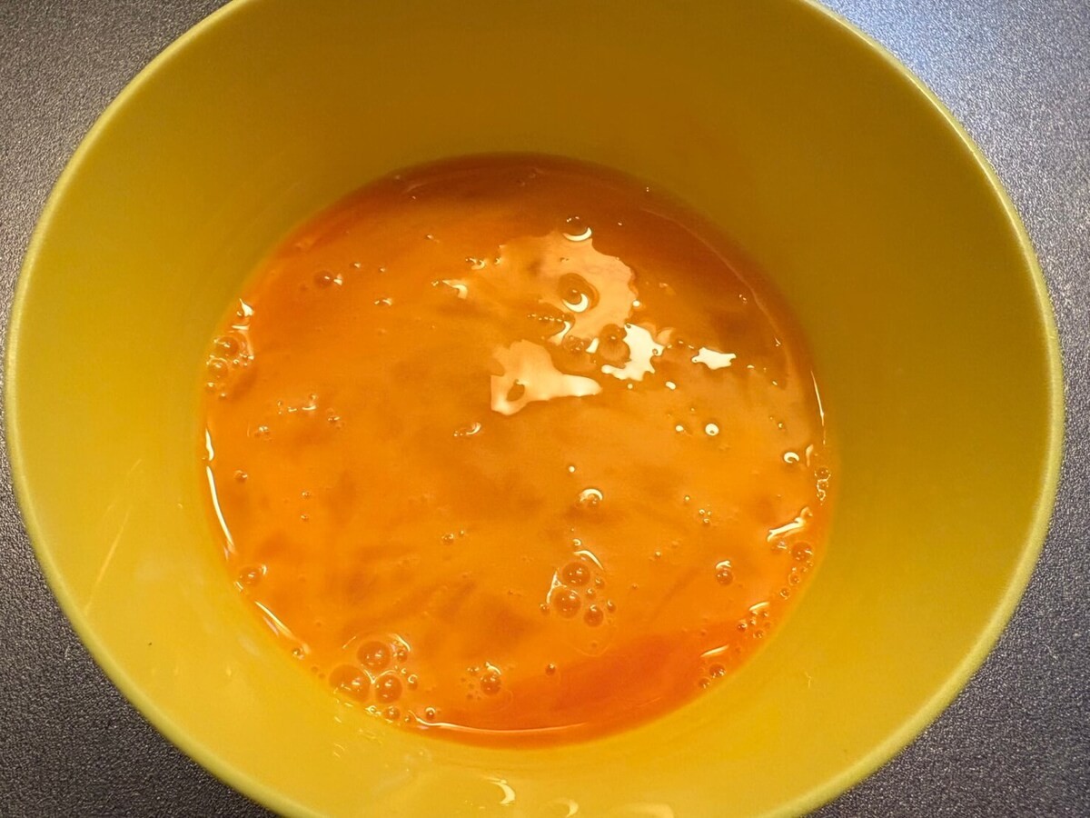 このとき、白身だけを混ぜず、黄身も一緒に崩してしまってOKです!