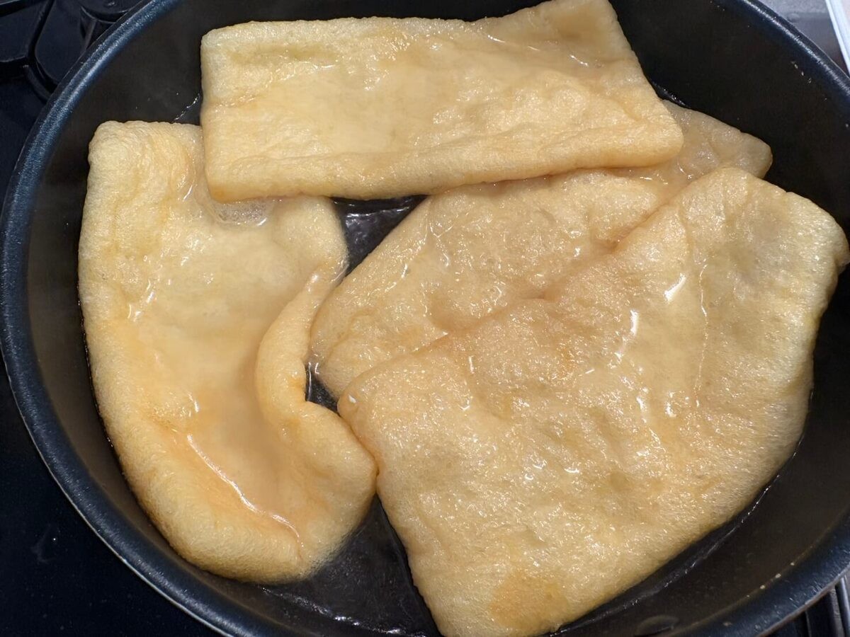 手間暇かけた分、黄金色に輝くお揚げの姿がいとおしく感じます(笑)。