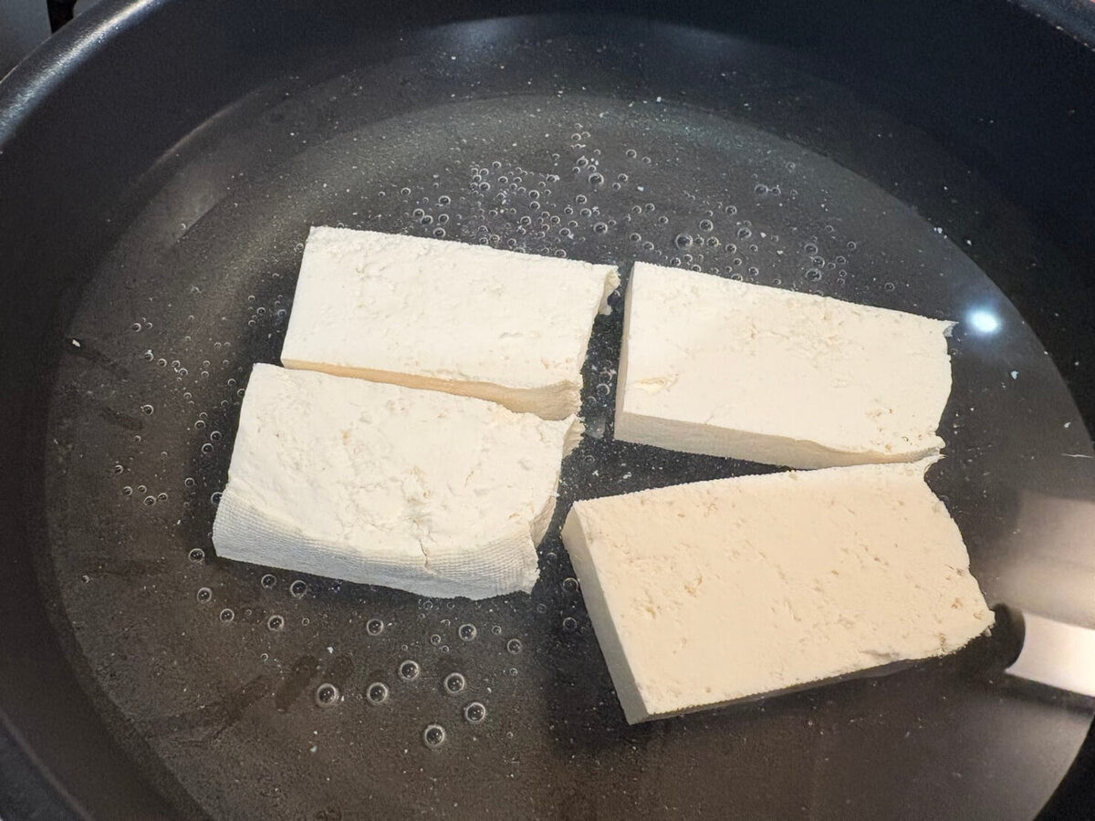 作り方①豆腐を茹でて水を切る