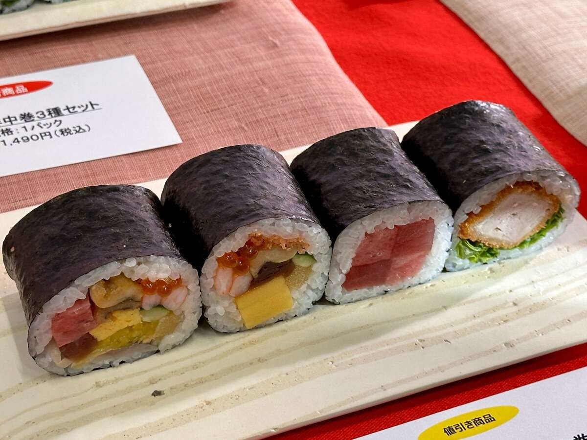 結論から言うと、今年は「値下げ」が最大のニュースです。さらに、海苔を3枚使った、爆盛りサイズの恵方巻きも登場していました。