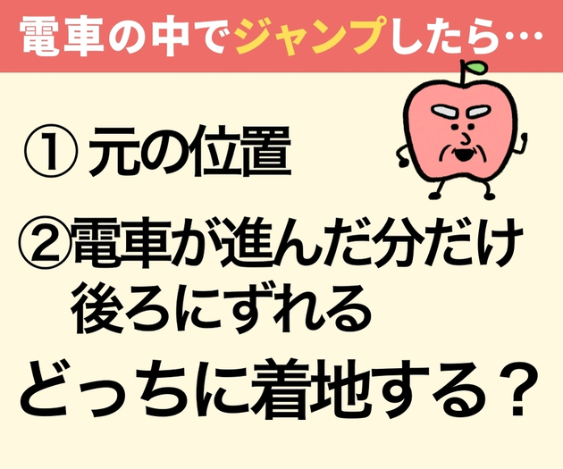 走っている電車の中でジャンプ→どこに着地するんだっけ【義務教育で習ってた!】え、どっちが正解?「これって一般常識!?」