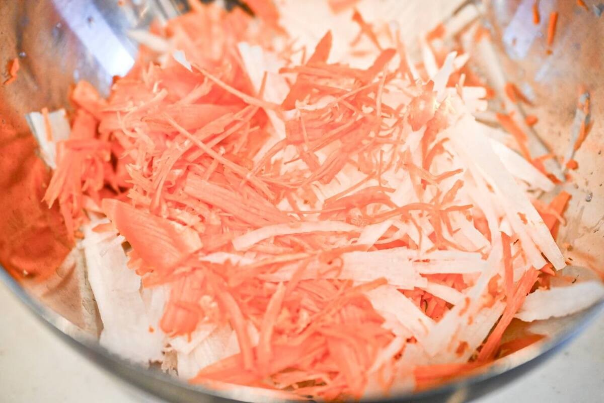 にんじん・大根はスライサーで細切りにします。