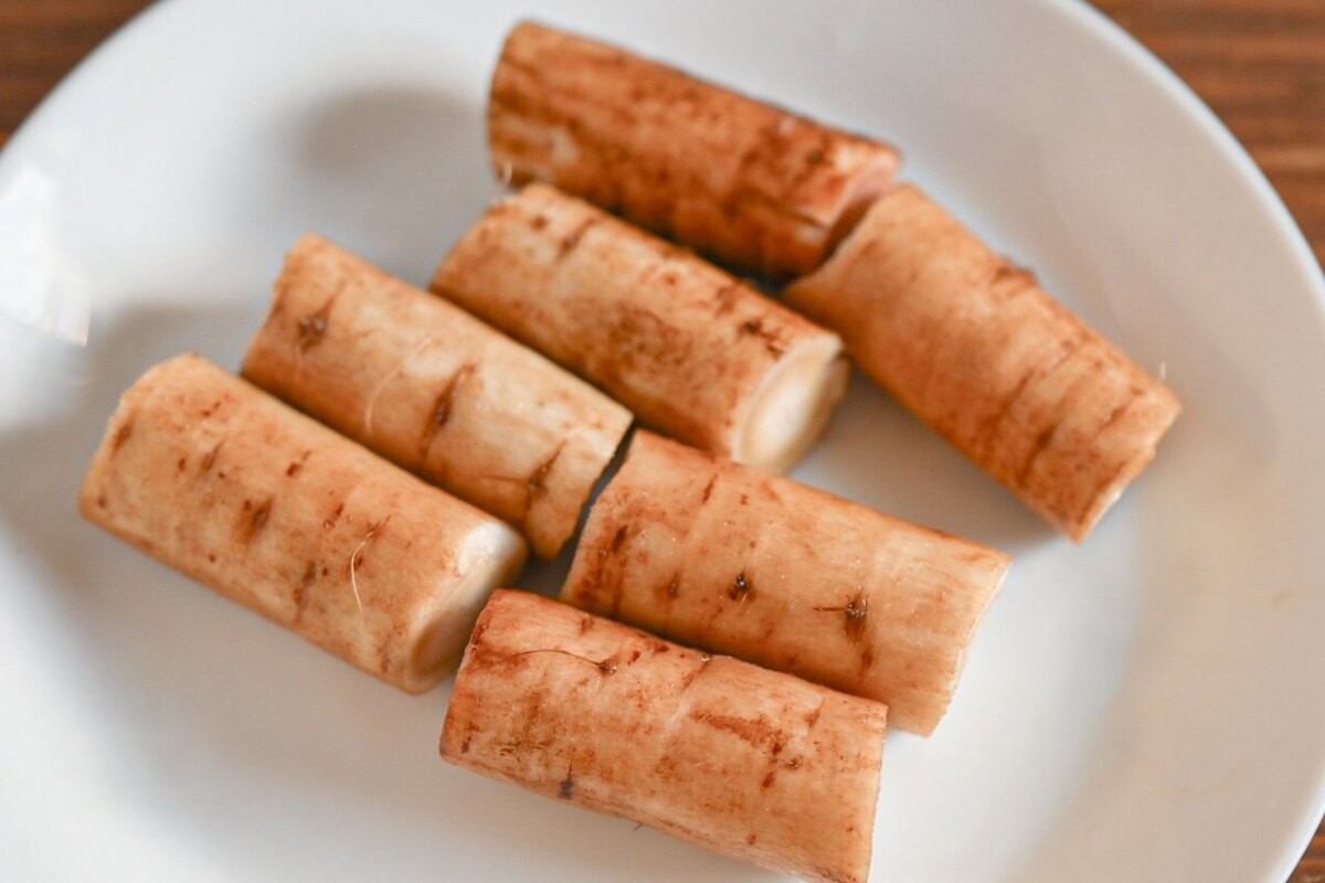 ごぼうはタワシでよく洗い、5cm幅に切ります。