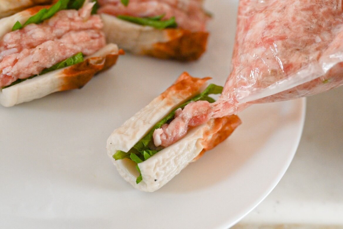 「餃子の皮の代わりに、なんと『ちくわ』を使っちゃいます!」
