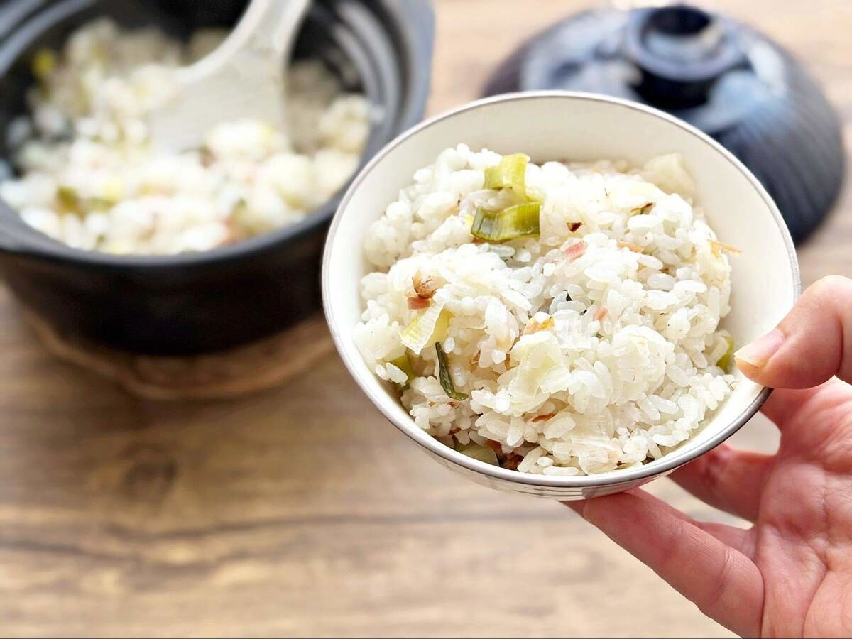 長谷川あかりさん「長ねぎとベーコンの炊き込みごはん」のレシピ