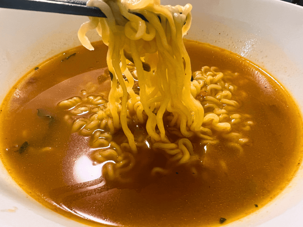 スープはどちらも赤め。 ですがマイルドは、やさしいピリ辛で、辛いものが苦手な人でも挑戦しやすいかな、と思いました。