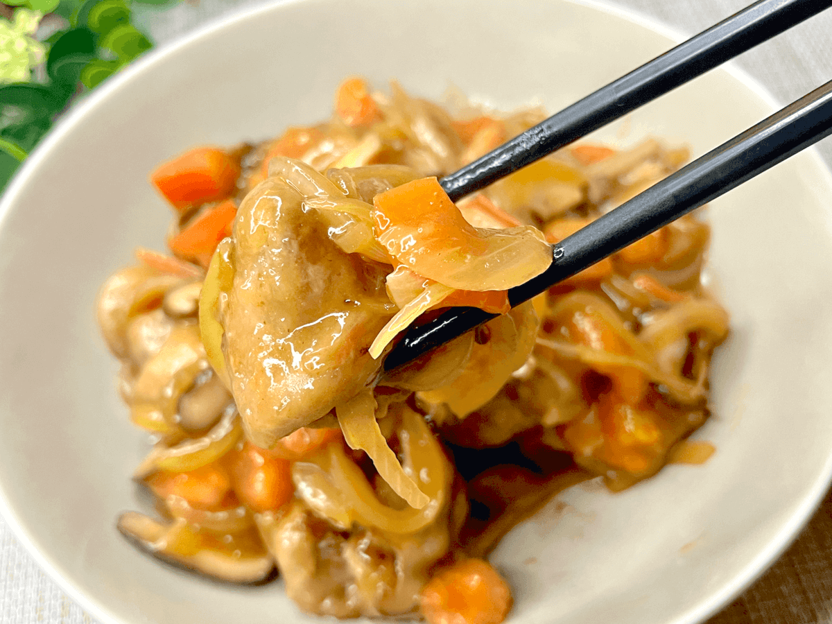 食感はふんわりやわらかく、しっとり。甘酢あんでさっぱり食べられるので、重たいレシピが苦手な人にもおすすめです。