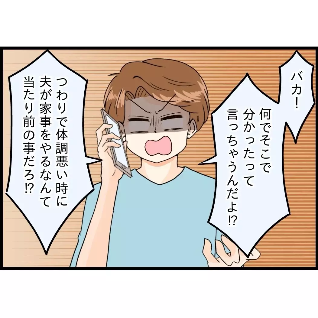 つい心配になったエース君は家に帰ったあと、姉と実際のところどうなのかを問い詰めたところ、さらに信じられないエピドードのオンパレード!つわりで思うようにできないと訴えた姉に対して、「10月10日の辛抱もできないなんて」と避難する家事モラハラ夫だったのです。
