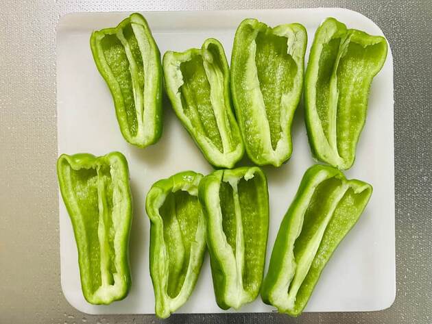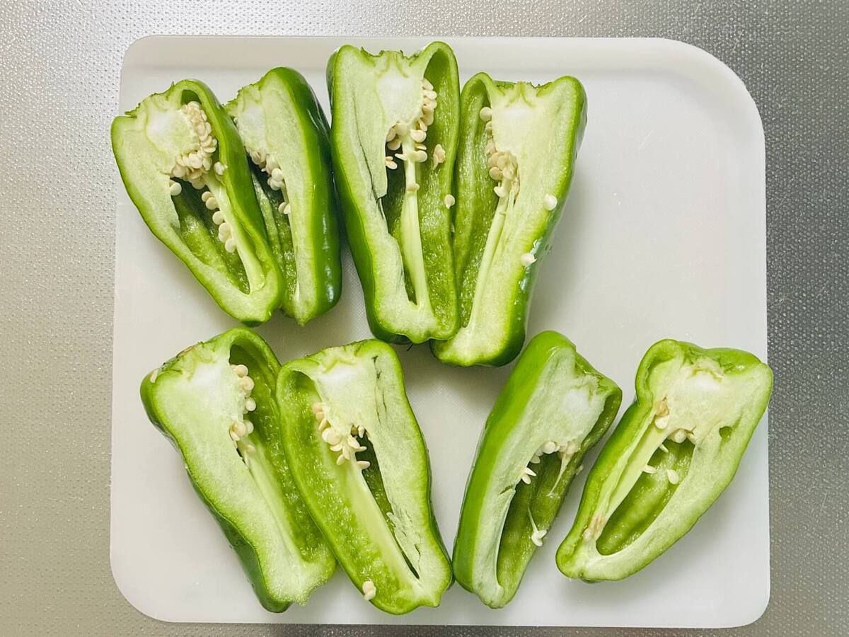 ピーマンは縦に半分に切り、