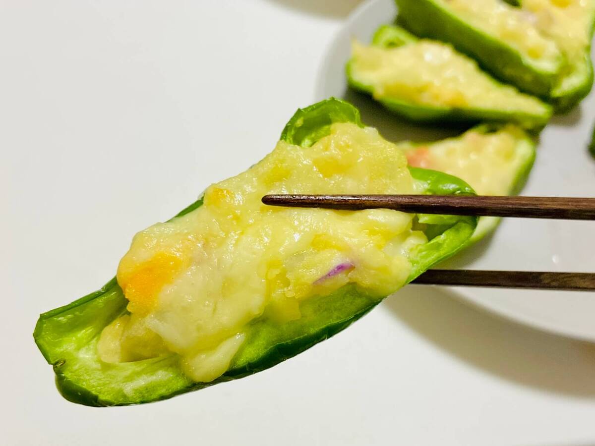 普段からお惣菜にひと手間加えるレシピはいろいろと試していますが、ピーマンにポテトサラダを詰めたのは初めてでした。