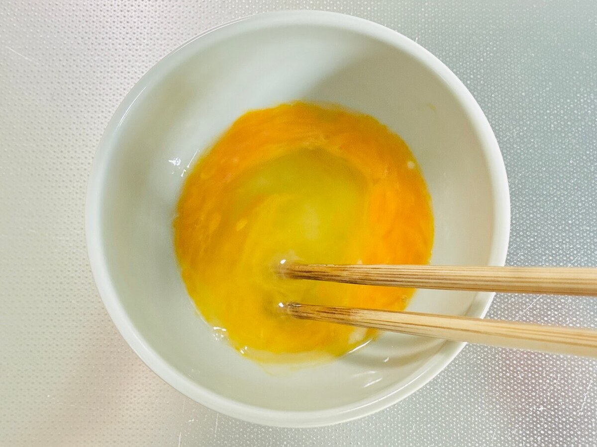 卵を溶きます。