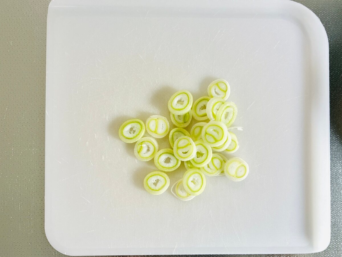 長ねぎは小口切りにします。