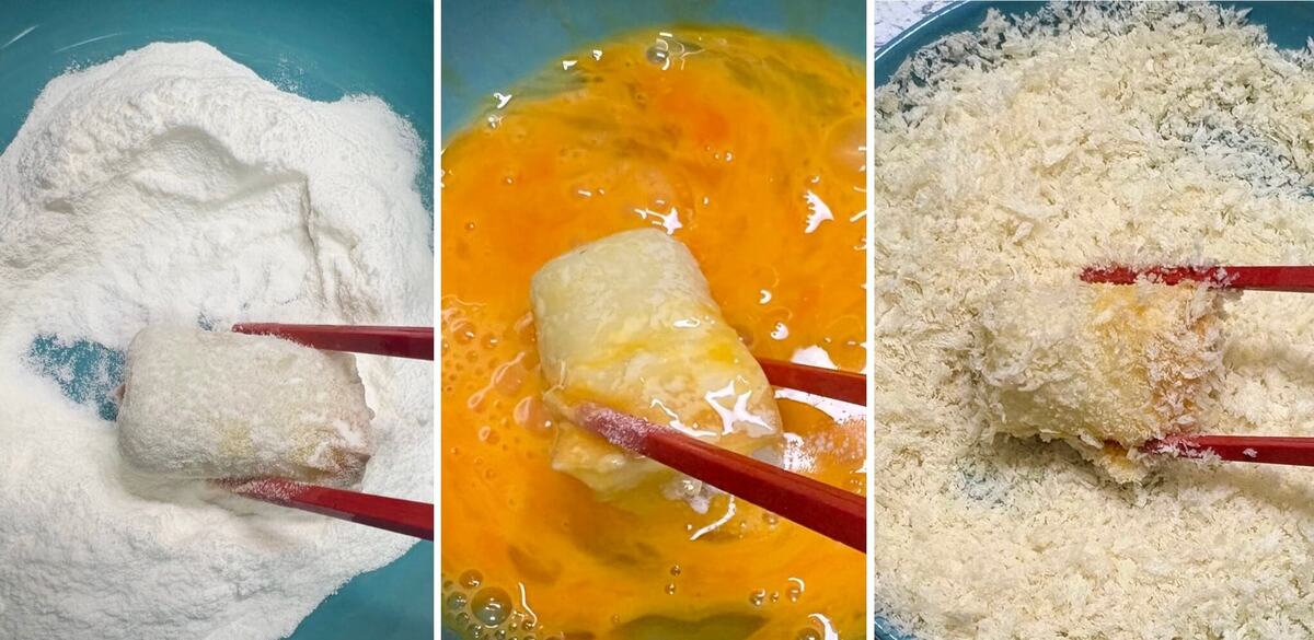 作り方④小麦粉→溶き卵→パン粉の順に衣をつける