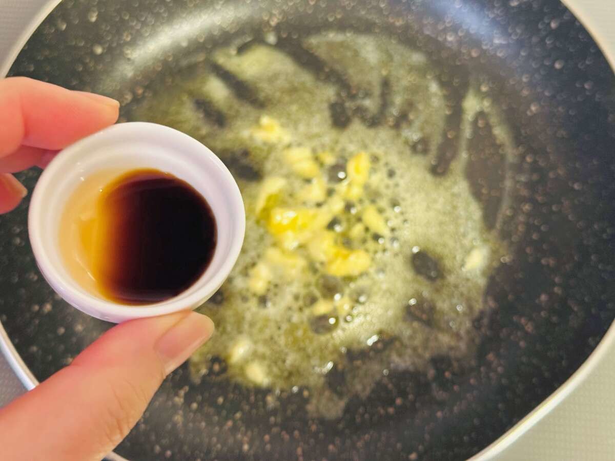 小鍋にバターとにんにくを入れたら弱火で熱し、にんにくが色づいたら仕上げに醤油を入れましょう。