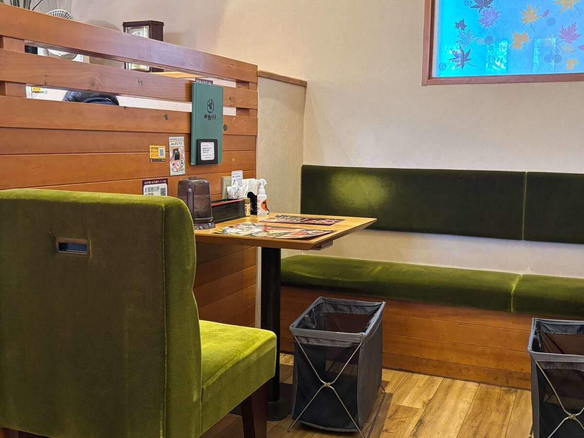 椅子はふかふか素材で、コメダ珈琲店らしさを感じます。