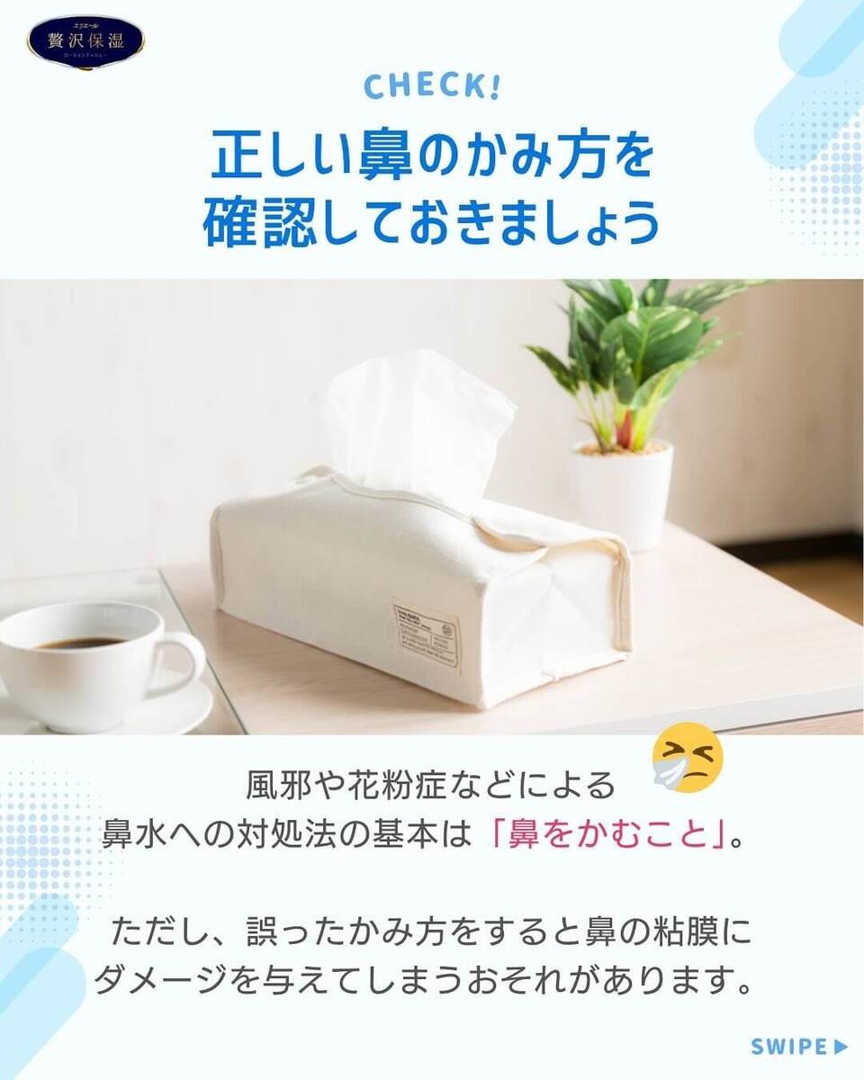 今回は、エリエール公式Instagram(@elleairofficial)が教える、意外と知らない「正しい鼻のかみ方」をご紹介します。