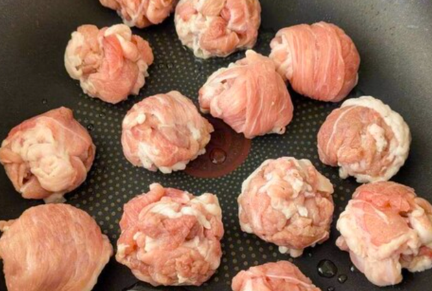 豚こま肉を丸めることで、火通りが早い、やわらかい、脂がしつこくない。