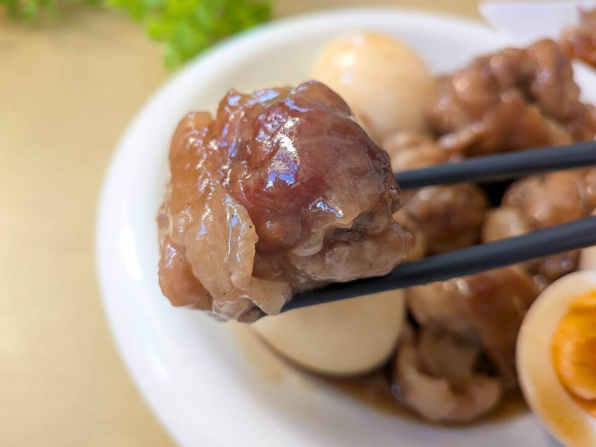 角煮特有の重さや脂の主張がない分、角煮よりも老若男女万能に楽しめる仕上がりになっています。