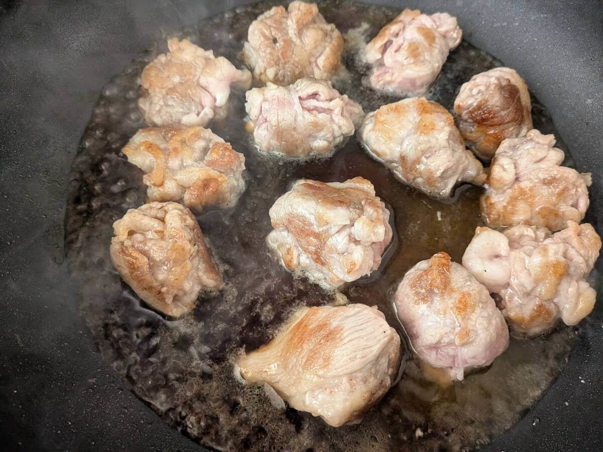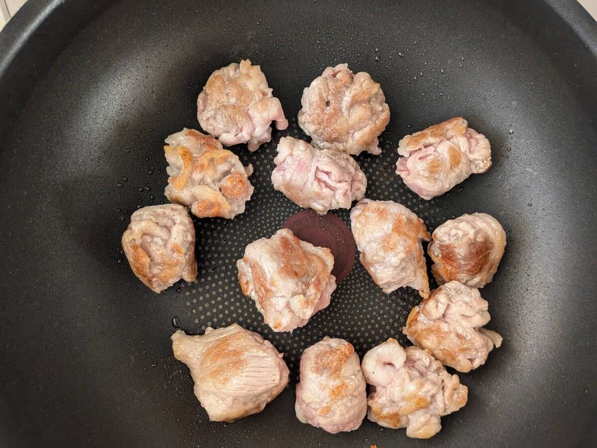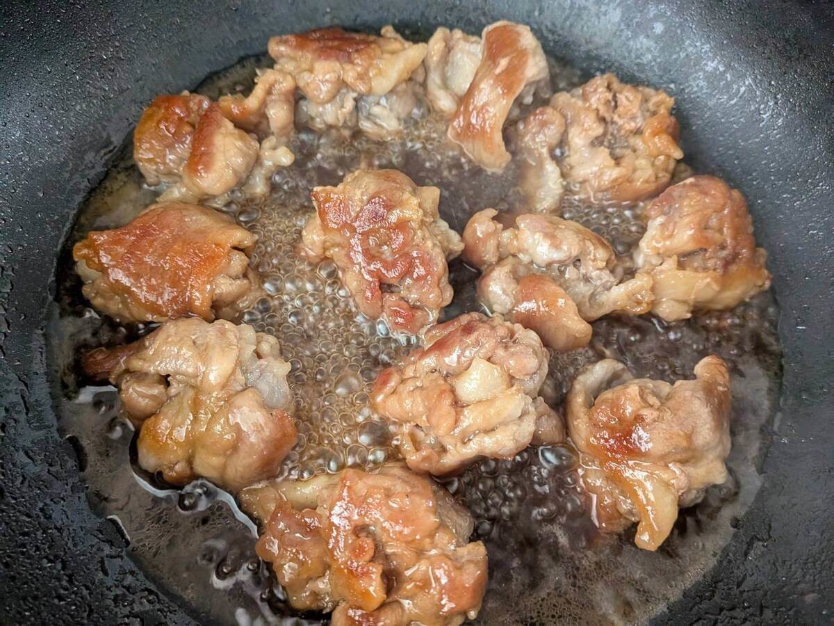 後に、調味料を入れて煮詰めるので、ここは中に火を通すというよりは、全体的に焼き色を付けるのが目的という感じでOKです♪