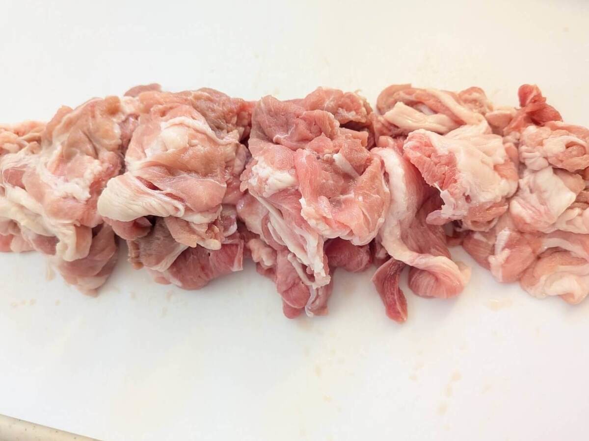 豚こま肉が大きいようであれば、3cmほどに切ります。