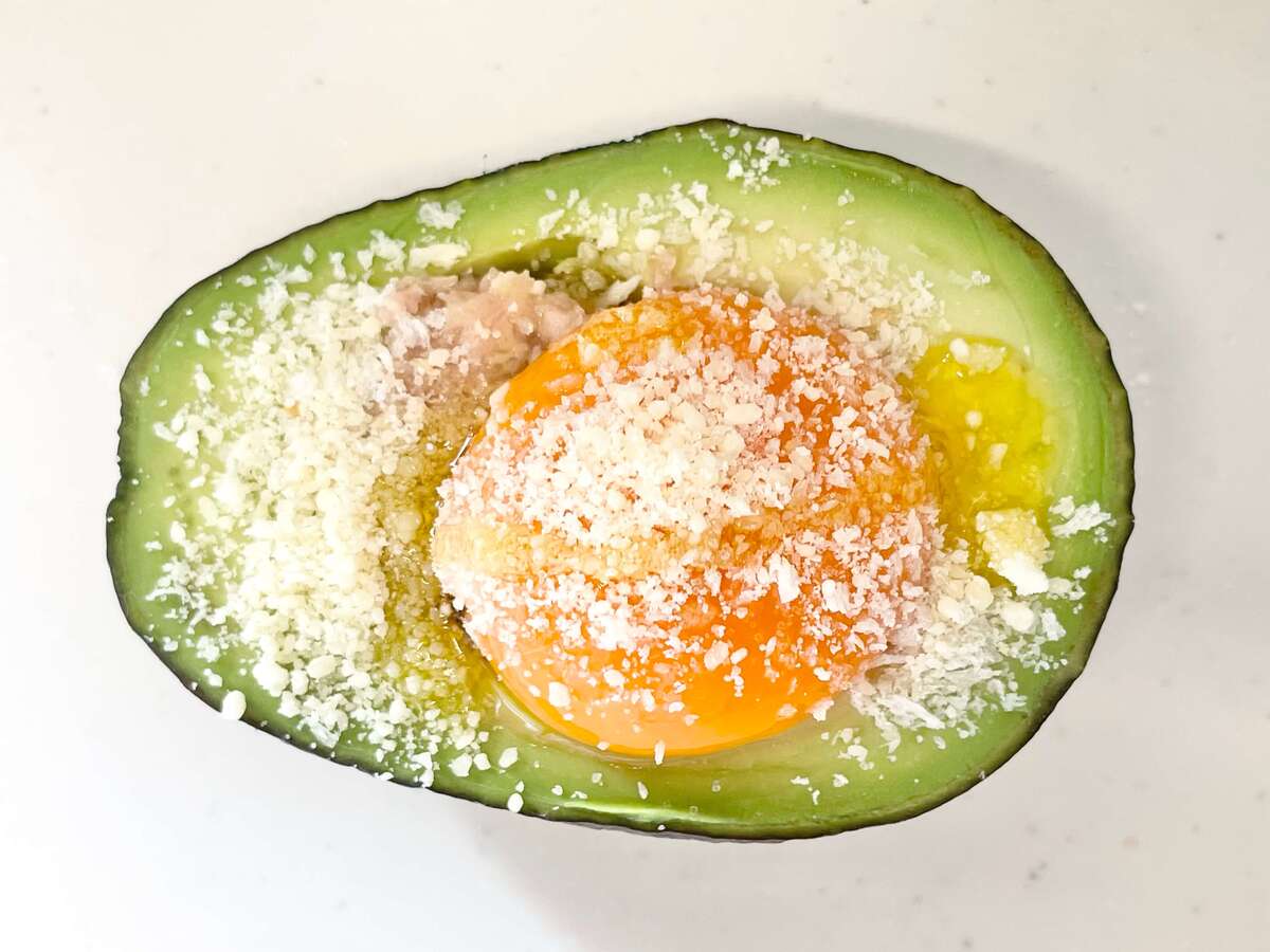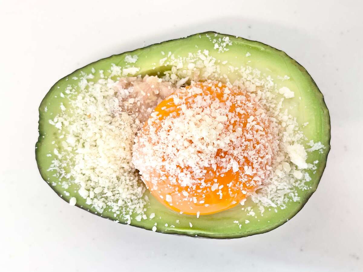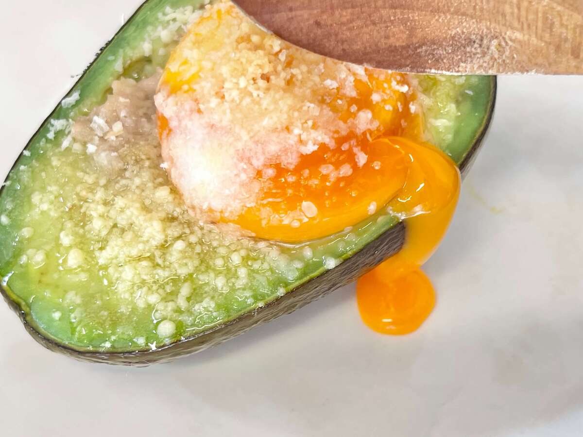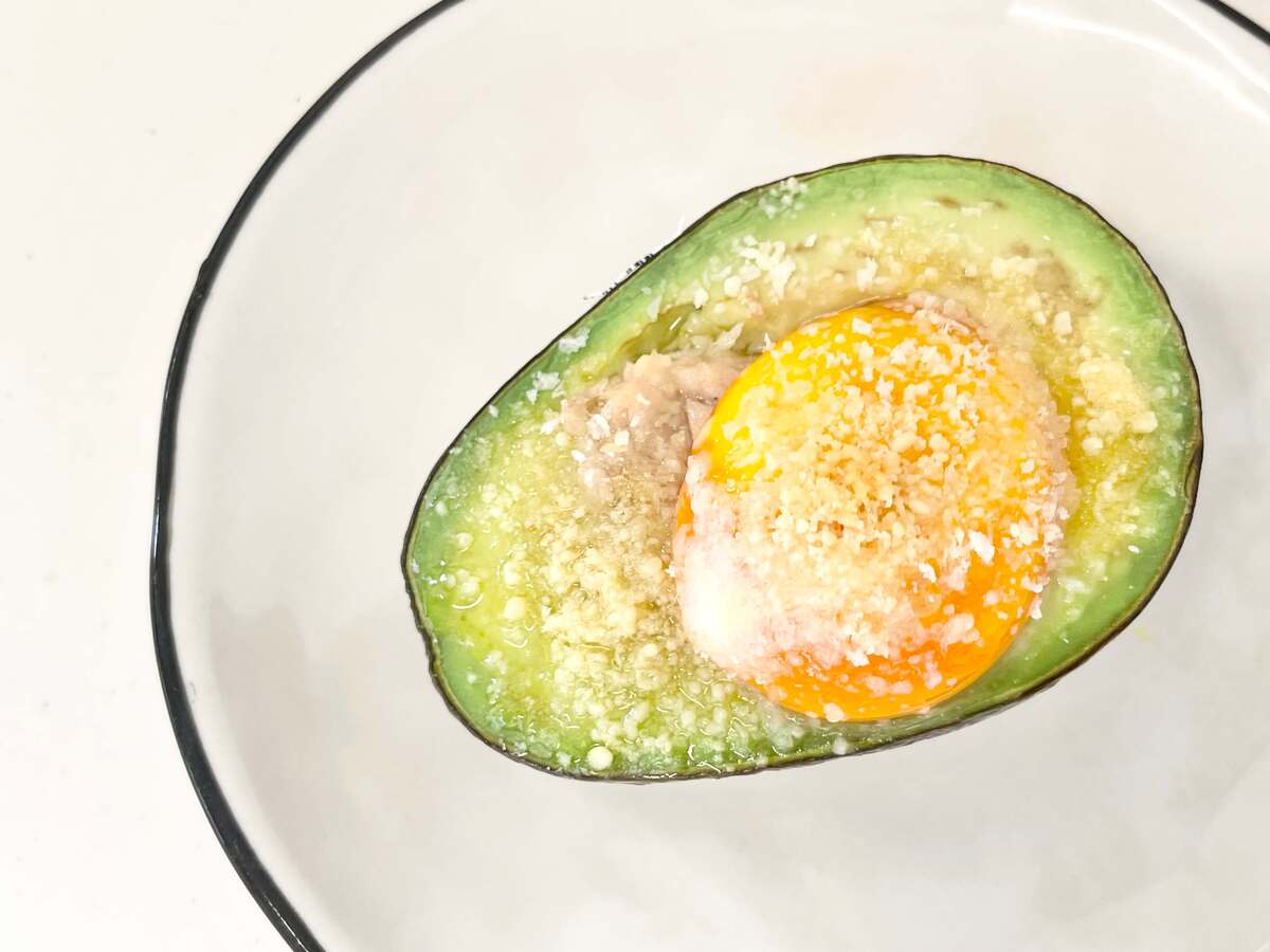 そこに粉チーズが加えるとアボカドのコクがより引き立ち、まるでグラタンのような味わになっていました。 チーズの塩気が全体の味をまとめています。