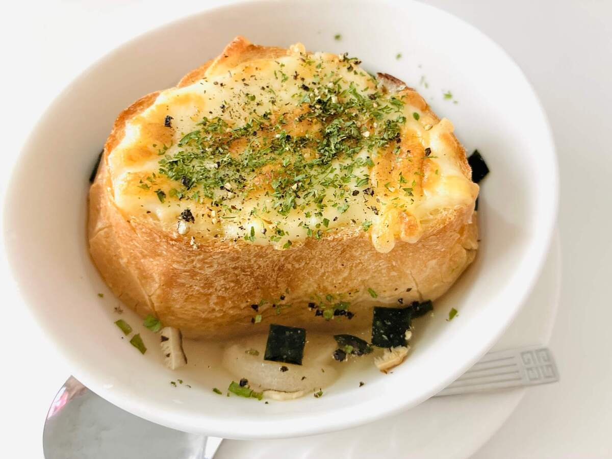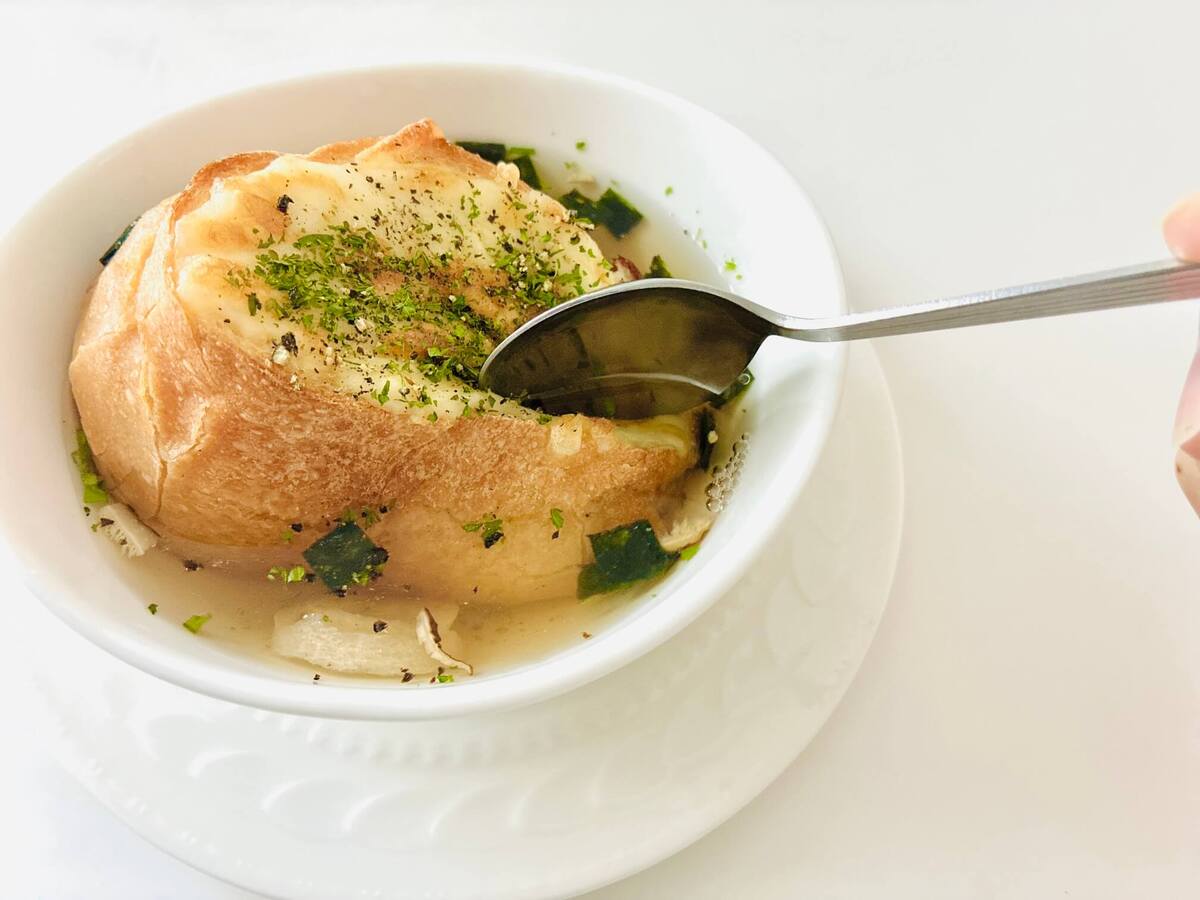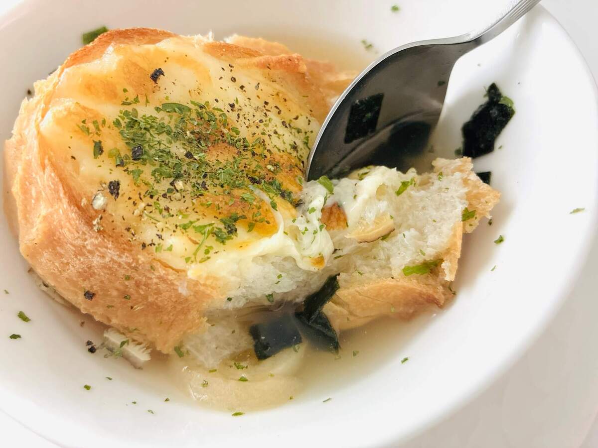 公式HPでは、「朝食や夜食にもぴったり。」と紹介されていましたが、お吸いものがまさかの主食に大変身。しかも、洋食に……。